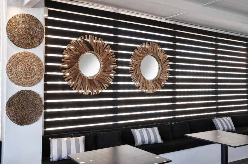 Mr And Mrs White Santori pune la dispoziția oaspeților un restaurant. Masa poate fi servită atât în interior, cît si în aer liber, pe terasă, în funcție de vreme. Oaspeţii pot avea diverse băuturi răcoritoare sau alcoolice la bar.