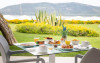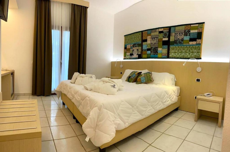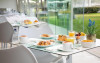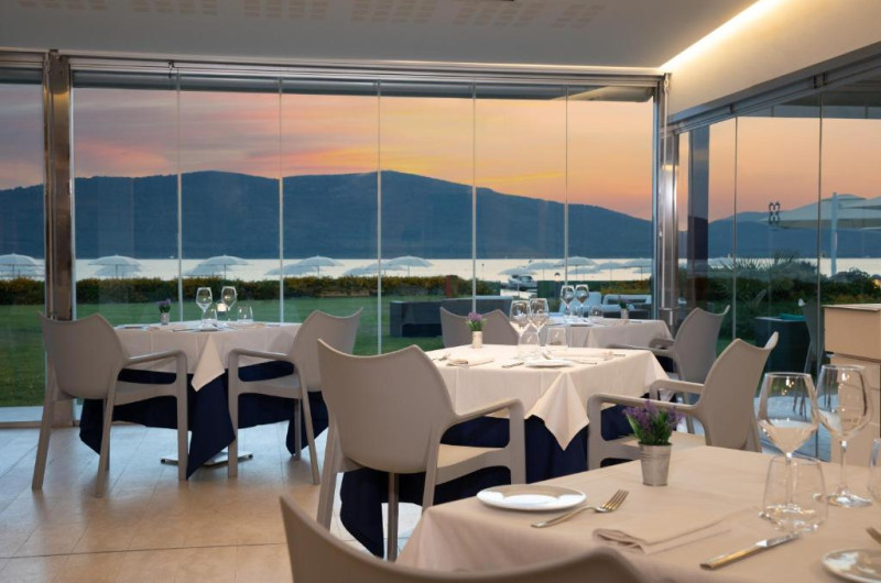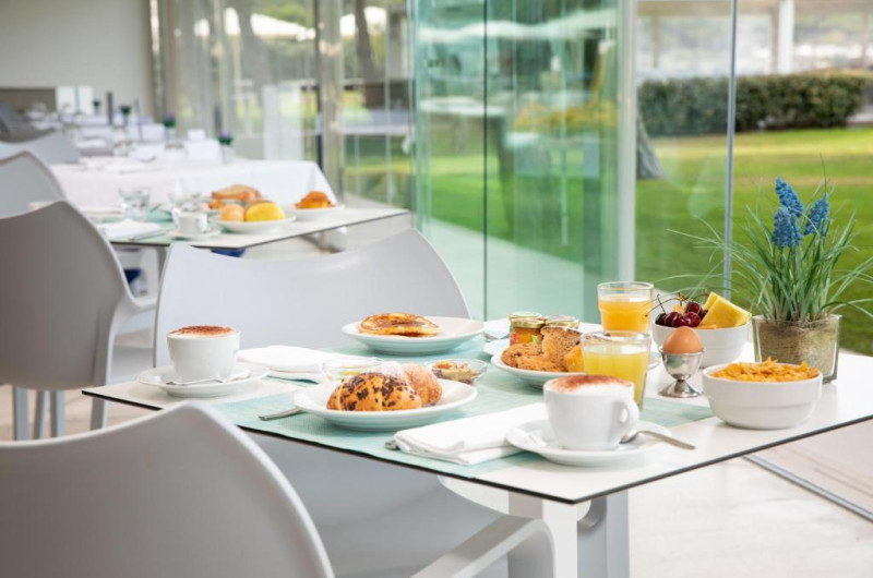 Micul dejun zilnic de la Hotelul Corte Rosada este servit in sala de mese cu aer condiționat, iar cina à la carte la restaurantul cu vedere la mare.