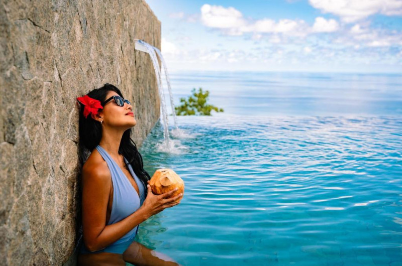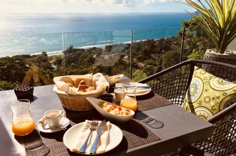 Restaurantul hotelului servește preparate din bucătăria internațională și creolă, cu accent pe fructe de mare proaspete. Piscina infinity oferă priveliști spectaculoase spre Oceanul Indian, iar barul de la piscină este locul perfect pentru un cocktail la apus.