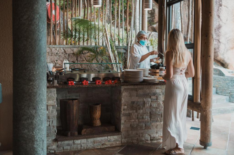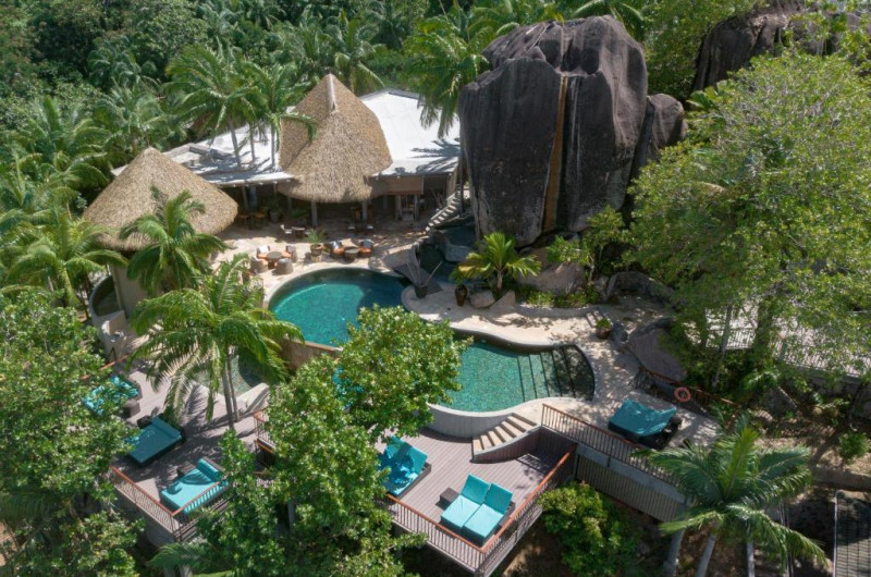 Camerele și suitele spațioase sunt decorate in stil creol modern și dispun de balcoane sau terase private cu vedere spre Oceanul Indian sau spre grădinile tropicale. Resortul pune la dispoziție două piscine infinity, un centru spa cu tratamente tradiționale și un restaurant cu specific creol și internațional.