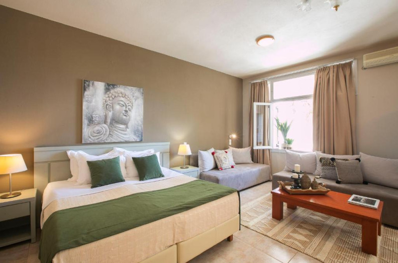Camerele și suitele de la Irida sunt mobilate simplu și au aer condiționat. Fiecare unitate are TV si minifrigider. Toate camerele au baie privată cu dus.