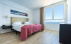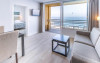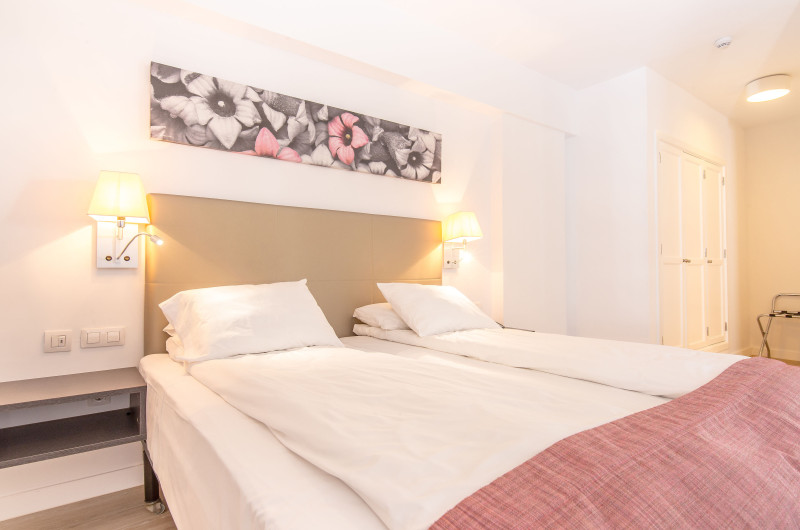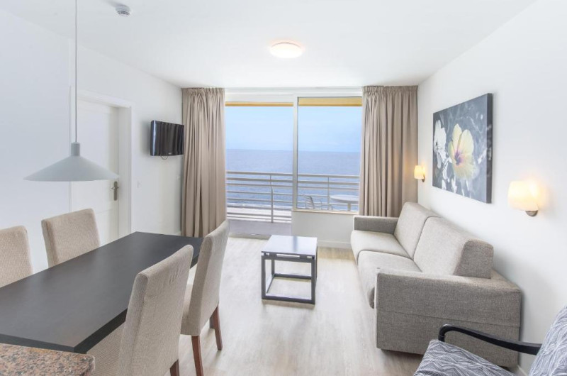 În majoritatea spațiilor de cazare clienții beneficiază de vedere spre mare de pe balcon sau de pe terasă. Camerele au un pat dublu. Pot fi solicitate paturi suplimentare. Un seif oferă cea mai bună protecție pentru bunurile de preț ale clienților. În chicinetă se găsesc un frigider, un aragaz și un aparat pentru cafea/ceai. În plus, există un telefon cu apelare directă, un televizor cu canale prin satelit/cablu TV și WiFi (gratuit). În baia dotată cu un duș și o cadă există un uscător de păr. De asemenea, stau la dispoziție camere adaptate pentru scaun cu rotile cu baie fără bariere. Hotelul oferă camere pentru fumători.