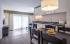 La proprietate există o cafenea care oferă cafea, băuturi și gustări. Masa poate fi servită atât în interior, cît si în aer liber, pe terasă, în funcție de vreme. Oaspeţii îşi pot pregăti micul dejun şi alte mese şi le pot savura chiar pe balcon.