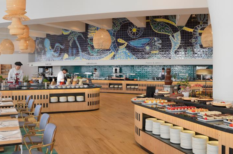 La H10 Atlantic Sunset oaspeții au la dispoziție 5 restaurante unde pot savura mâncăruri delicioase, în stil bufet sau à la carte. Preparate din bucătăria internațională și italiană sunt oferite zilnic la micul dejun, prânz și cină. Masa poate fi servită atât în interior, cît si în aer liber, pe terasă, în funcție de vreme. Oaspeţii pot avea diverse băuturi răcoritoare sau alcoolice la bar. De asemenea , în cadrul proprietății, există cafenea și snack bar ideale pentru o gustare rapidă.