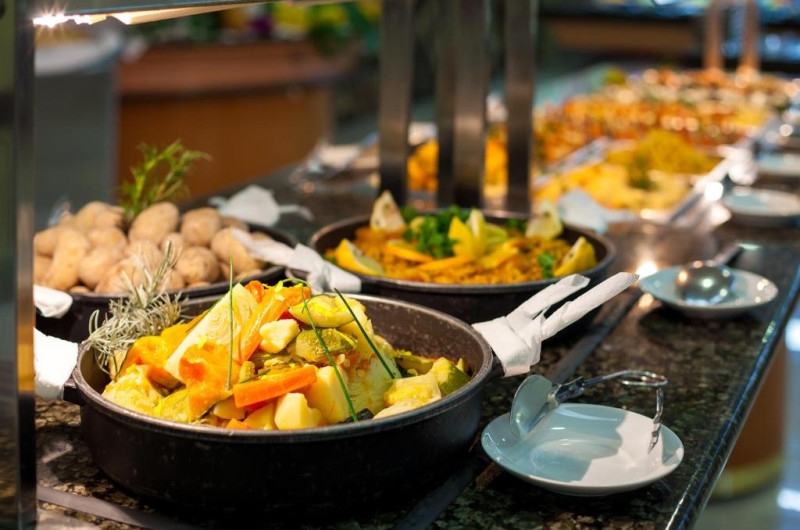 Există diverse locuri unde se poate lua masa: un restaurant, o cafenea și un bar. Locul de cazare oferă pentru masă pachete de servicii cu mic dejun inclus și demipensiune. La mic dejun și o cină se organizează un bufet divers.