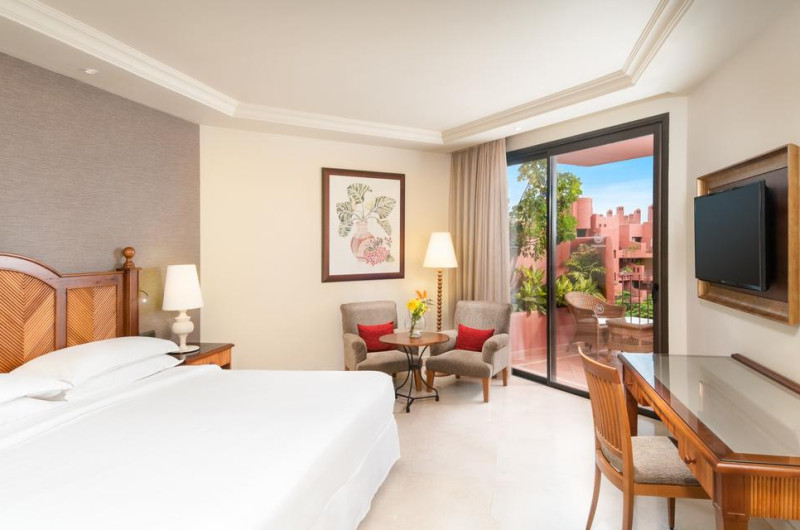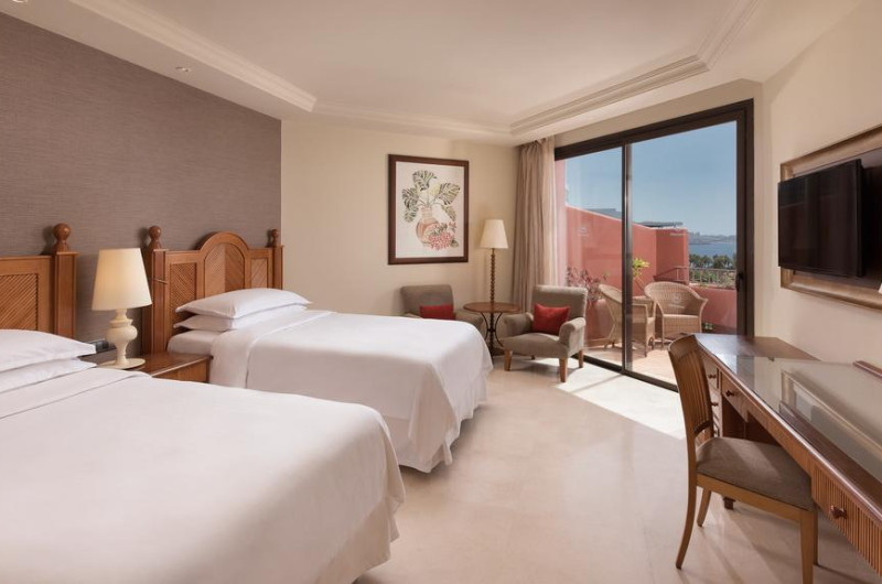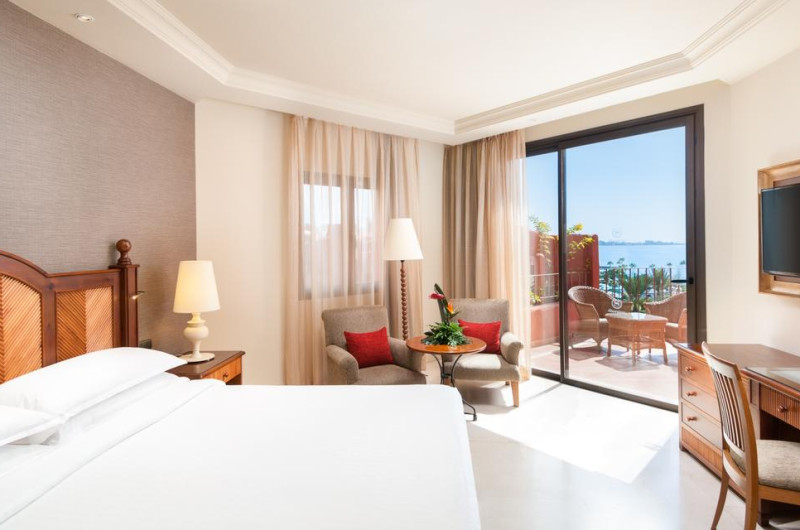 Camerele confortabile de la Sheraton La Caleta Resort & Spa au pardoseală de gresie/ marmură, aer condiționat, Tv cu canale prin satelit și seif. Fiecare cameră dispune de minibar. Oaspeții pot solicita serviciul de room service pentru a servi masa sau diverse băuturi. Unele camere au vedere la grădină. În camere există baie cu cadă sau duș ce are în dotare foehn și articole de toaletă gratuite. Oaspeții au acces gratuit la serviciul Wi-fi în camere. Curățenia in cameră se face zilnic. Proprietatea oferă camere pentru familie cu o suprafață mai mare și un număr mai mare de paturi față de cele standard. Se pot rezerva de asemenea camere pentru nefumători.