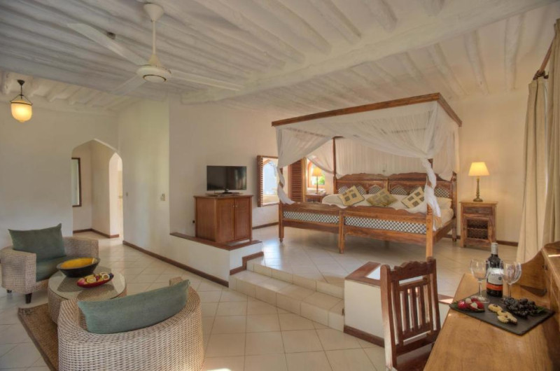 Camerele sunt amenajate in bungalouri tradiționale cu acoperiș din frunze de palmier și oferă vedere spre grădina tropicală sau ocean. Resortul dispune de două piscine inconjurate de șezlonguri, centru spa cu tratamente tradiționale africane, și trei restaurante care servesc atat specialități locale, cat și internaționale.