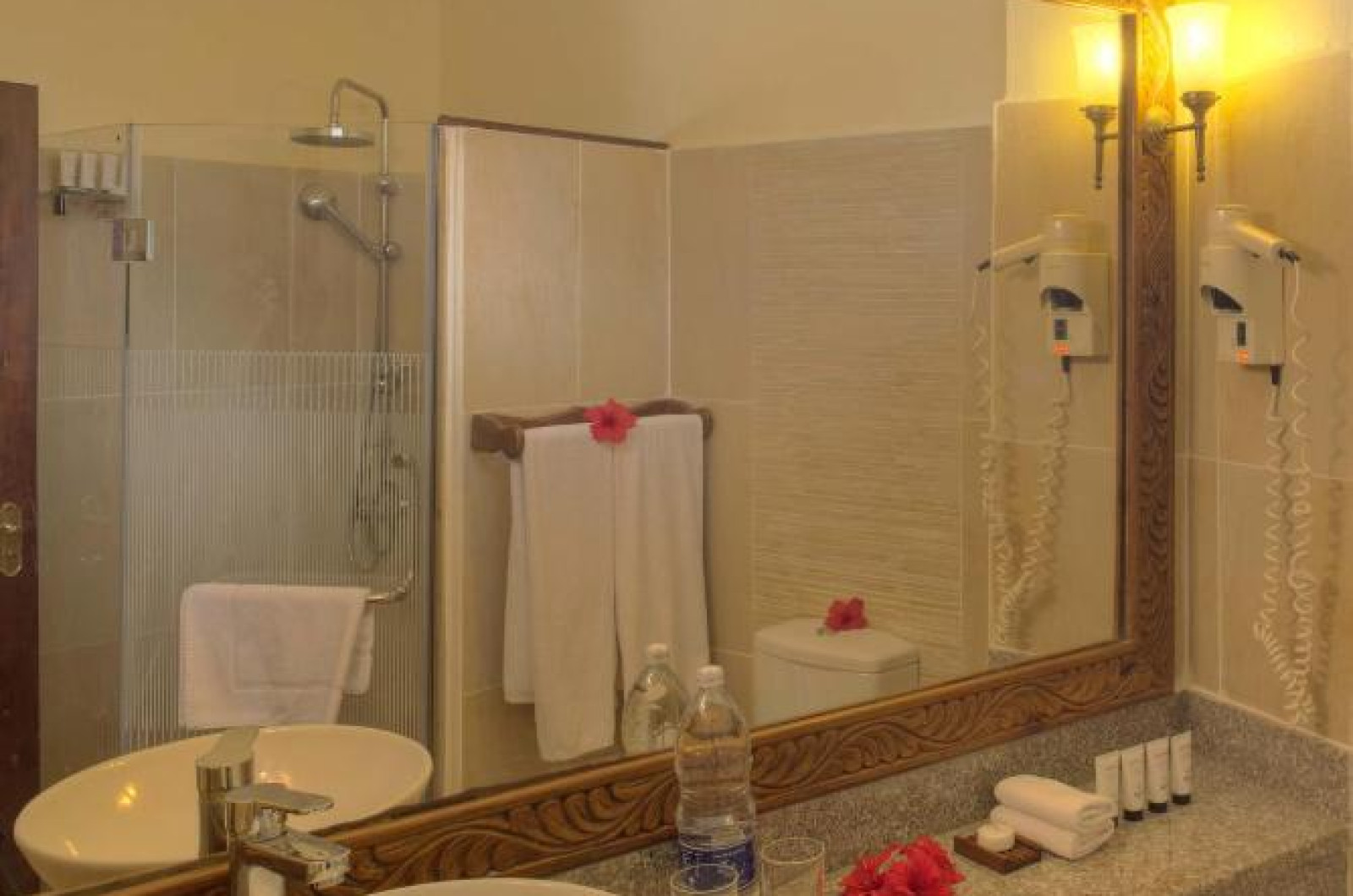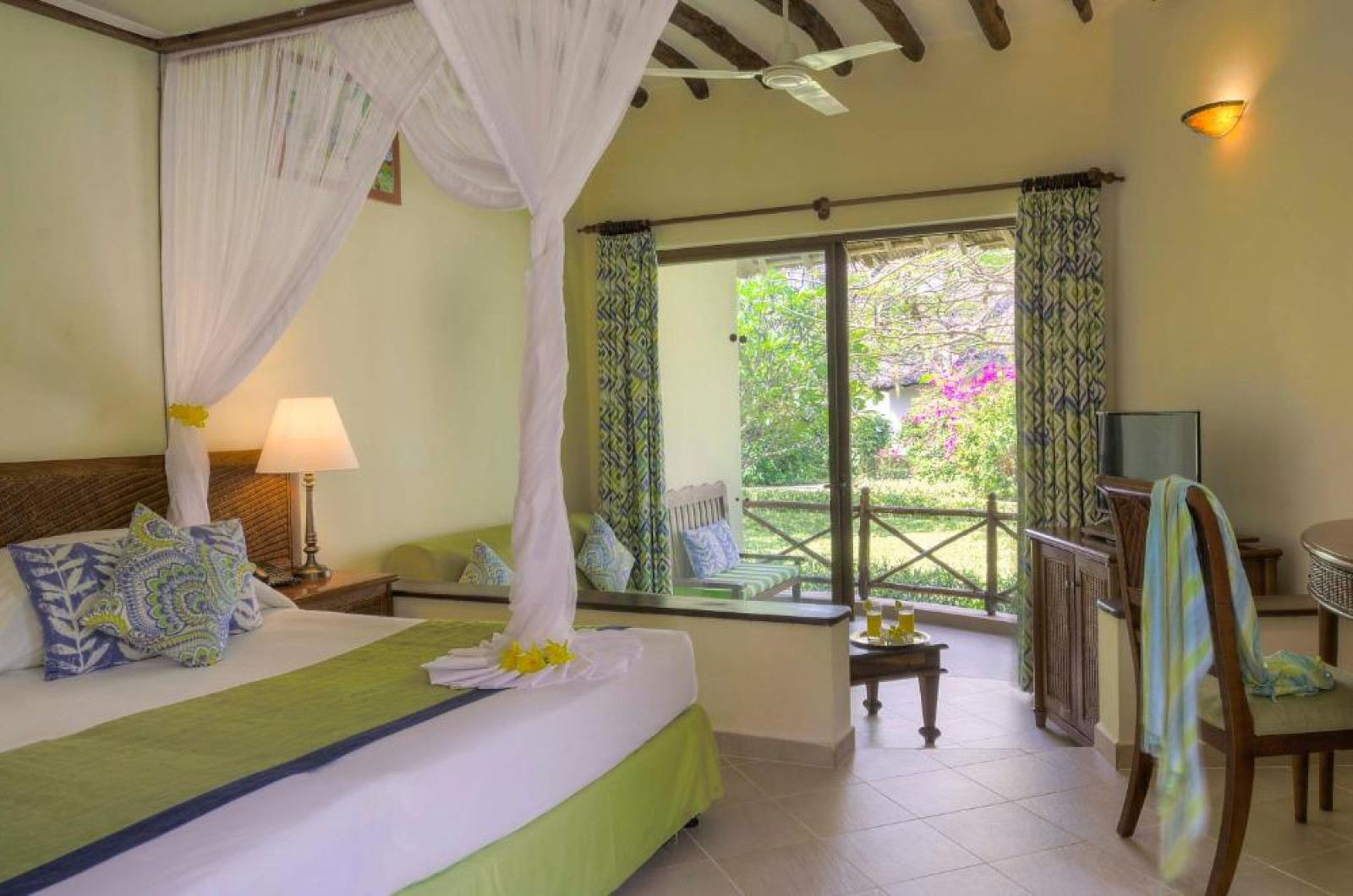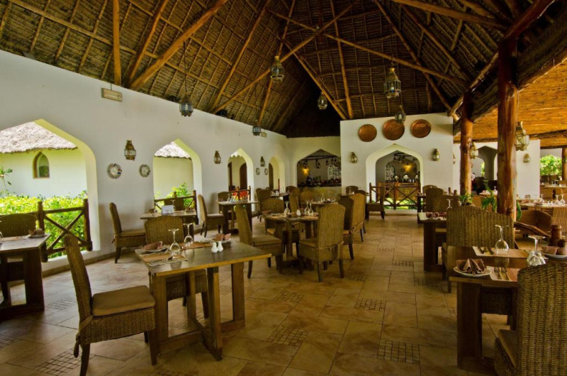 Camerele sunt amenajate in bungalouri tradiționale cu acoperiș din frunze de palmier și oferă vedere spre grădina tropicală sau ocean. Resortul dispune de două piscine inconjurate de șezlonguri, centru spa cu tratamente tradiționale africane, și trei restaurante care servesc atat specialități locale, cat și internaționale.