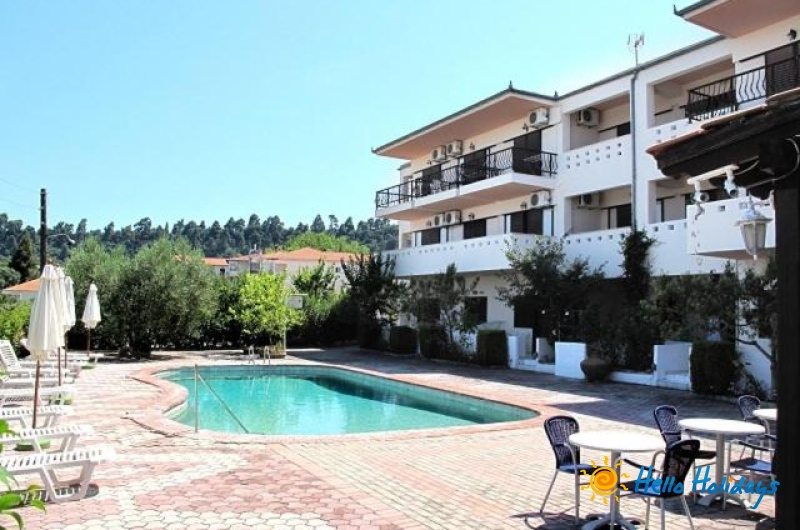 Studio Skentos ofera o priveliste minunata spre golful Kassandra, fiind considerat o oaza de relaxare pentru turisti.