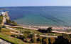 Pe plajă există șezlonguri și umbrele de plajă contra cost.
