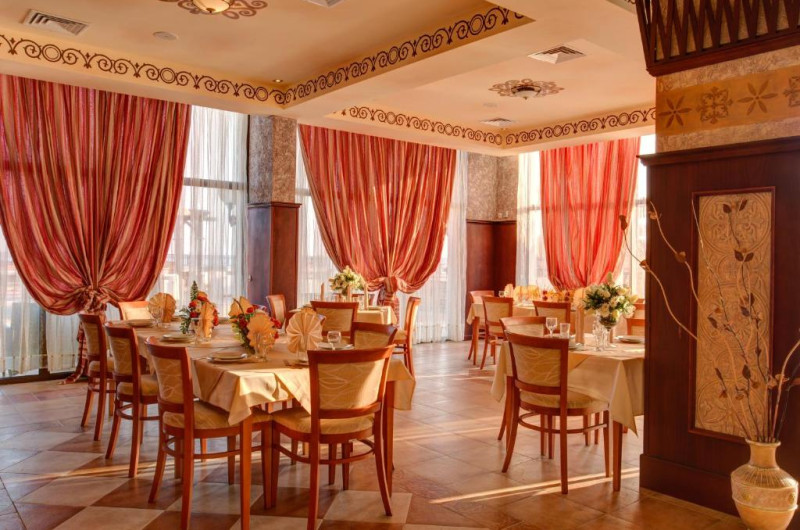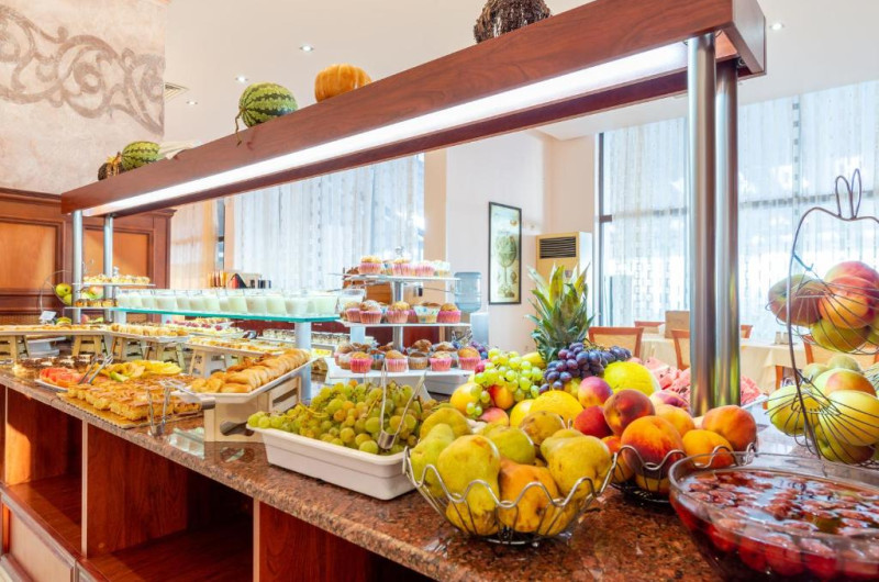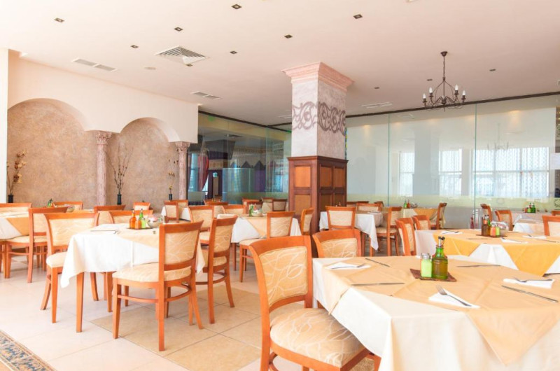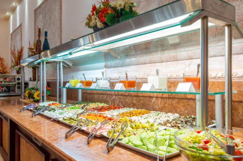 Oferta All Inclusive include un bufet de mic dejun, pranz și cină in restaurantul principal, mic dejun tarziu cu gustări, sandvișuri, pizza, dulciuri și fructe la barul din hol, băuturi alcoolice și răcoritoare locale, bere, băuturi calde, cocktailuri alcoolice și nealcoolice, băuturi răcoritoare, inghețată și gustări la barul de la piscină și la snack barul de pe plajă. Seara se organizează programe de divertisment si spectacole, 6 zile pe săptămană.