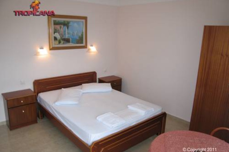 În camere există baie cu cadă sau duș ce are în dotare foehn și articole de toaletă gratuite. Fiecare cameră dispune de cană pentru prepararea apei calde. Oaspeții pot solicita serviciul de room service pentru a servi masa sau diverse băuturi. Unele camere au balcon cu vedere la mare sau la grădină. Camerele confortabile de la Tropicana Hotel au pardoseală de gresie/ marmură, aer condiționat, Tv cu canale prin satelit și seif. Oaspeții au acces gratuit la serviciul Wi-fi în camere. Curățenia in cameră se face zilnic. Fiecare unitate de cazare are frigider. Proprietatea oferă camere pentru familie cu o suprafață mai mare și un număr mai mare de paturi față de cele standard. Se pot rezerva de asemenea camere pentru nefumători.