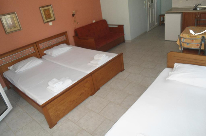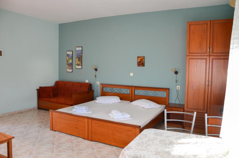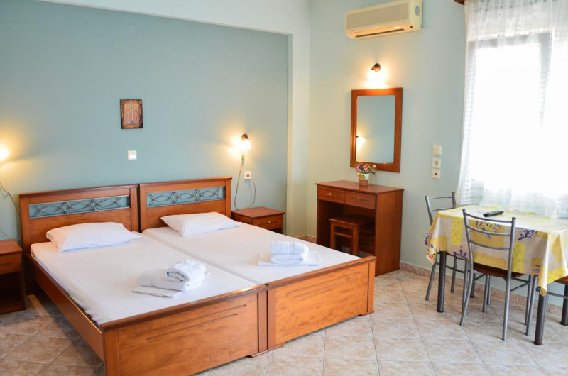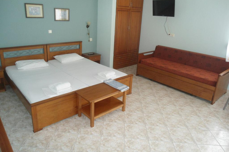 Fiecare cameră dispune de cană-fierbător. Unele camere au balcon cu vedere la mare sau la grădină. Camerele confortabile de la Vergina Hotel sunt dotate cu pardoseală de gresie/ marmură, aer condiționat și Tv. În camere există baie cu cadă sau duș. Oaspeții au acces gratuit la serviciul Wi-fi în camere. Curățenia in cameră se face zilnic. Toate camerele spațioase de la Vergina Hotel au canapea în living, ceea ce oferă un plus de confort. Fiecare unitate de cazare include o chicinetă utilată cu frigider, plită de gătit și ustensile de bucătărie. De asemenea, este disponibilă o zonă de luat masa. Proprietatea oferă camere pentru familie cu o suprafață mai mare și un număr mai mare de paturi față de cele standard. Se pot rezerva de asemenea camere pentru nefumători.