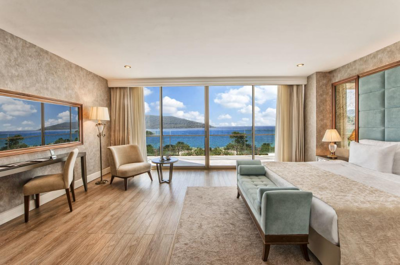 Situată în Bodrum, această proprietate de 5 stele dispune de o zonă de plajă privată, piscină interioară și piscină exterioară cu șezlonguri și umbrele de soare. Facilitățile de la Vogue Hotel Bodrum includ sală de fitness și teren de tenis. Pentru petrecerea timpului liber oaspeții au la dispoziție activități de agrement pe timpul zilei și programe de divertisment seara. Proprietatea are, de asemenea, servicii de recepție cu program non - stop, concierge și închirieri auto. Se oferă acces gratuit la internet Wi-fi în spațiile publice. Parcarea este disponibilă la proprietate gratuit.
