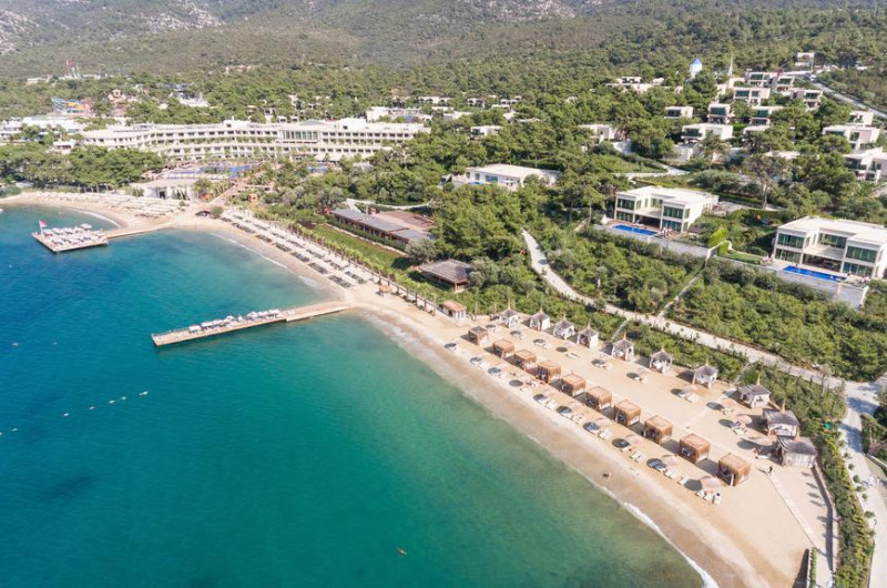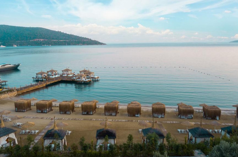 Vogue Hotel Bodrum dispune de plajă privată. Pe plajă există șezlonguri și umbrele de plajă.
